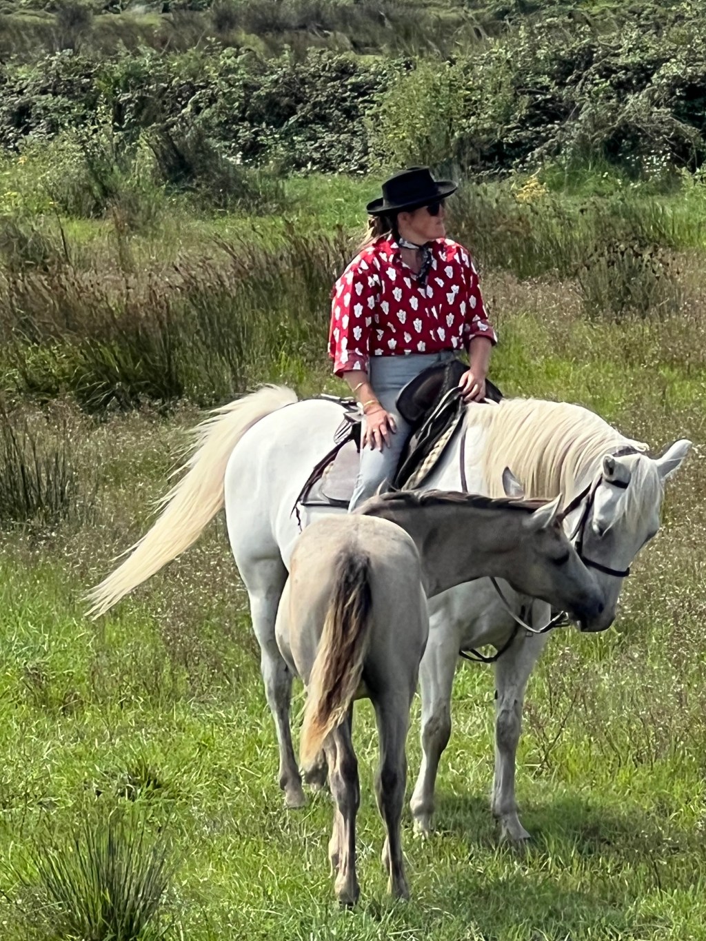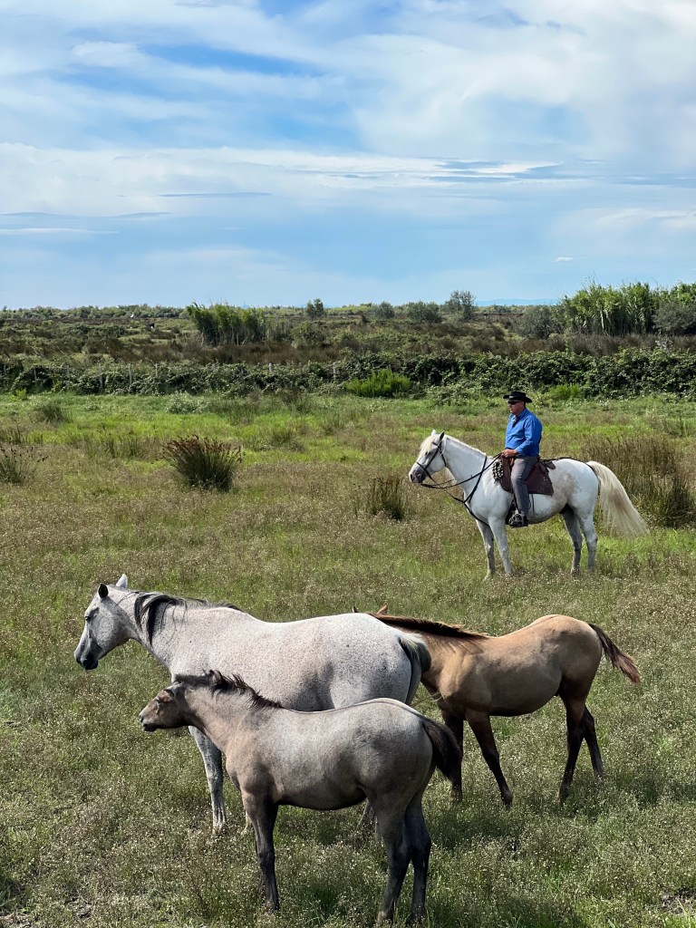 Later, we took a bus to the Camargue which is a protected area of France, as it is home to many animals, including pink flamingos, which we were unable to see. However, we had a lunch and a tour of a ranch on which they raise bulls for bull fighting (but not the kind where they kill the bulls) and where they have horses. The bulls and horses are “wild” in that they graze freely, aren’t vaccinated or shoed, and basically just live their lives (although a few times a year some bulls go into a ring, but if they go in, they get a month off afterward to de-stress.).